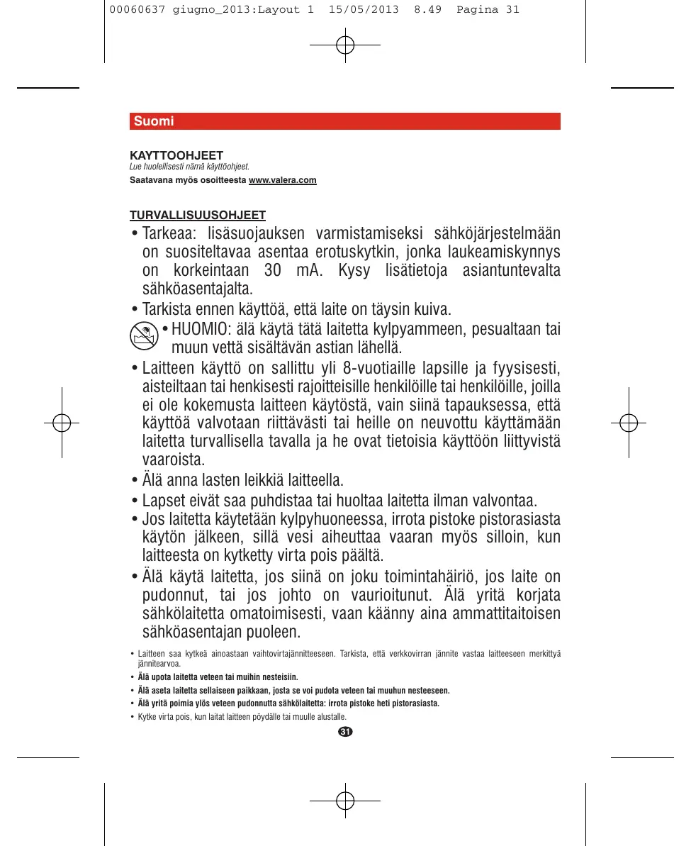 Retrouvez gratuitement la notice de l'appareil SWISS METAL MASTER VALERA au format PDF.