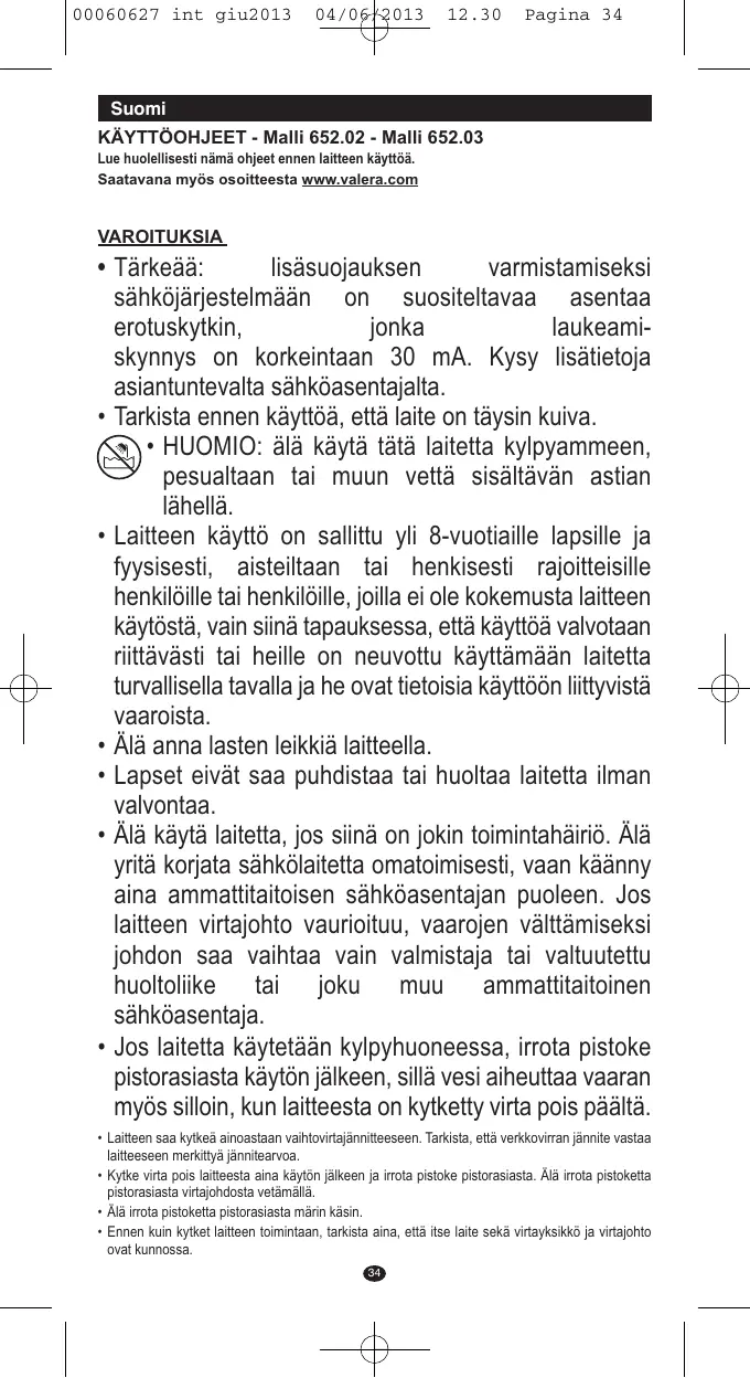 Retrouvez gratuitement la notice de l'appareil X MASTER VALERA au format PDF.