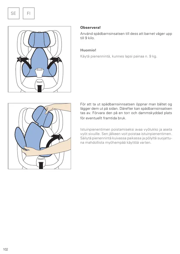 Safety GmbH & Co. KG of handelspartners zijn niet aansprakelijk voor mogelijke schade aan de voertuigstoelen. FI När sätet är på önskad plats släpper du spaken så att spärren hakar fast igen. Kontrollera att spärren har hakat fast genom att trycka eller dra i sätet. Kun se on halutussa asennossa, vapauta vipu ja anna sen lukittua. Tarkista oikea lukittuminen istuinkaukaloa painamalla tai vetämällä.