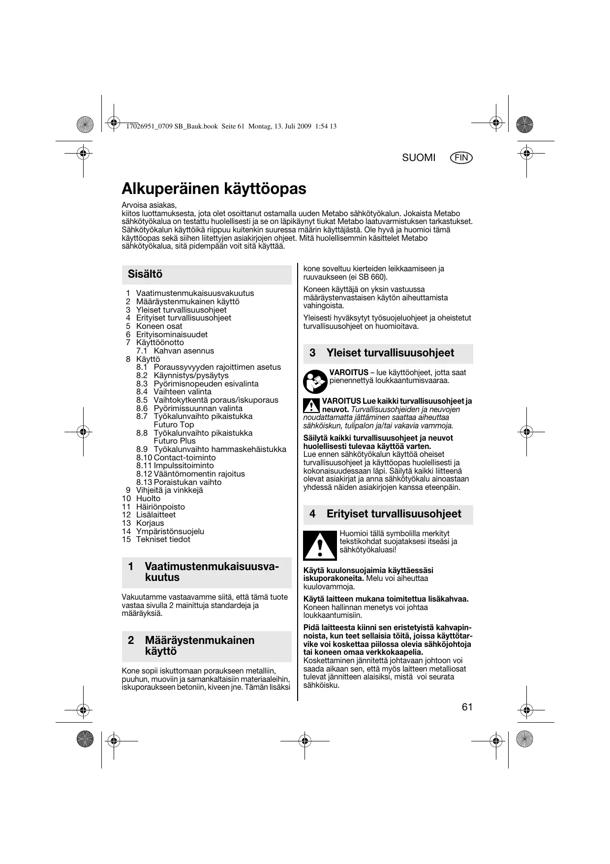 Téléchargez la notice de votre Iskuporakone au format PDF gratuitement ! Retrouvez votre notice UHE2450 - METABO et reprennez votre appareil électronique en main. Sur cette page sont publiés tous les documents nécessaires à l'utilisation de votre appareil UHE2450 de la marque METABO.