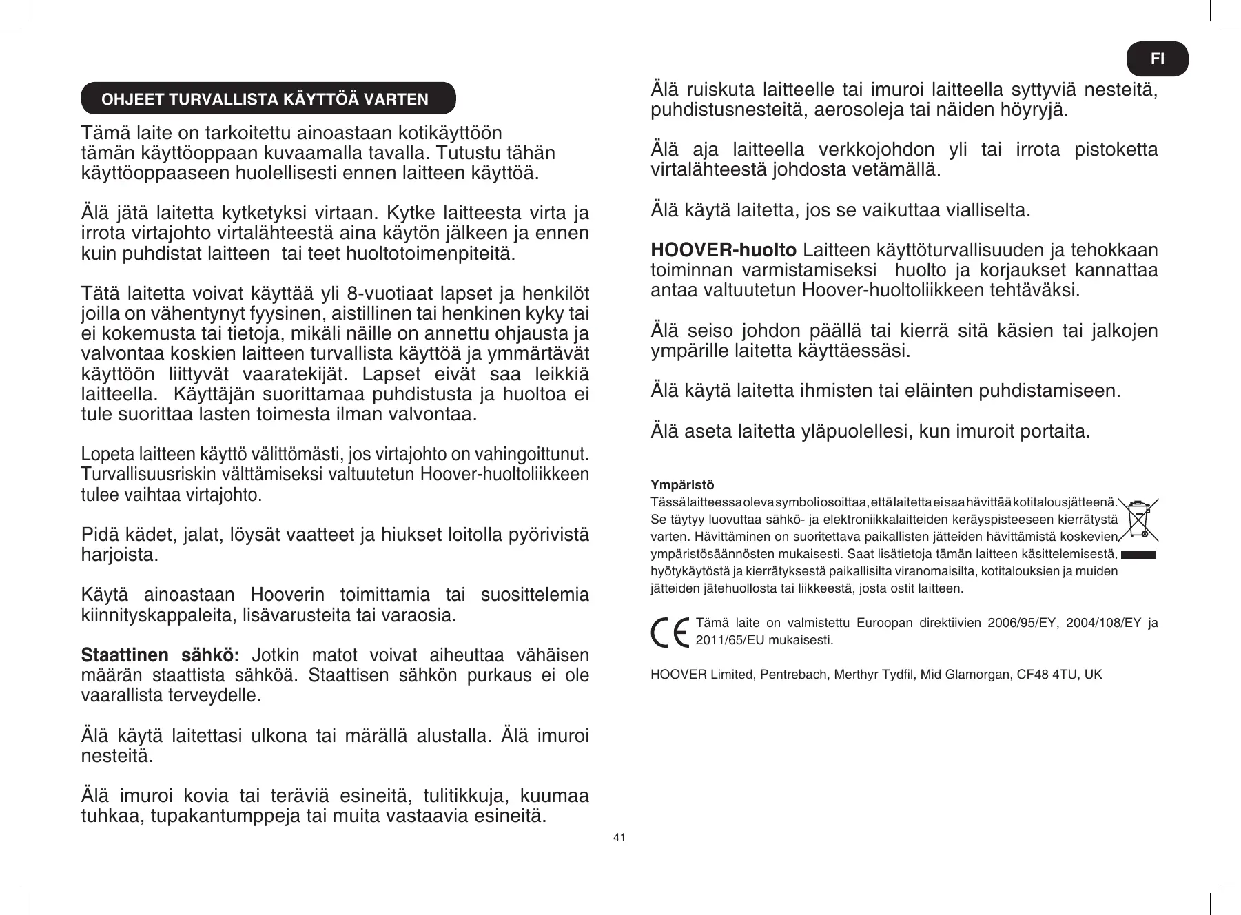 KÄYTTÖOHJE SL71_SL10 PARQUET SPACE EXPLORER HOOVER