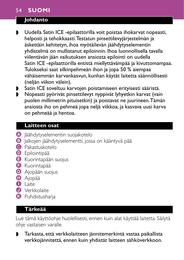 SUOMI Käyttö Yleistä tietoa ihokarvojen poistosta