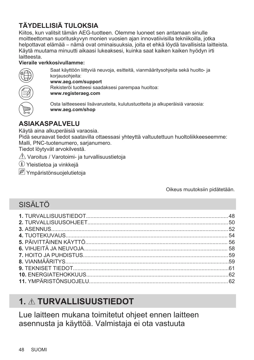 Enregistrer votre produit pour un meilleur service : www.registeraeg.com Acheter des accessoires, consommables et pièces de rechange d’origine pour votre appareil : www.aeg.com/shop