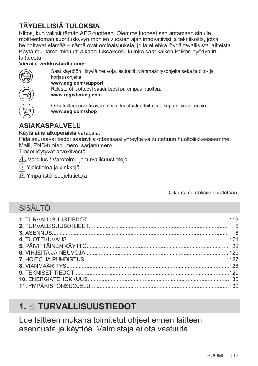 Obtenir des conseils d’utilisation, des brochures, un dépanneur, des informations sur le service et les réparations : www.aeg.com/support Enregistrer votre produit pour un meilleur service : www.registeraeg.com Acheter des accessoires, consommables et pièces de rechange d’origine pour votre appareil : www.aeg.com/shop