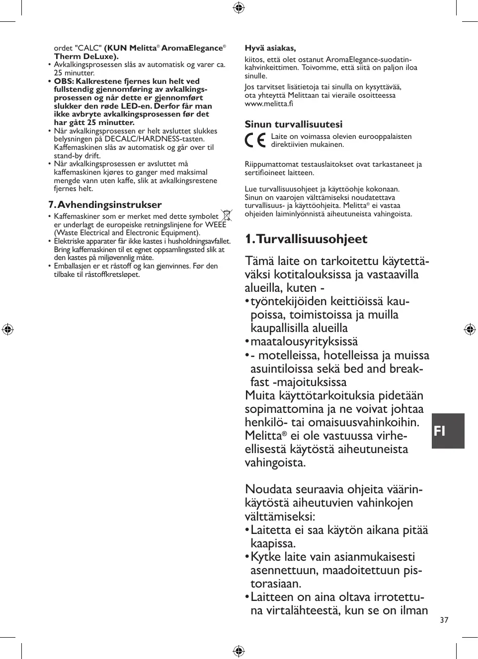 KÄYTTÖOHJE AROMA ELEGANCE THERM MELITTA