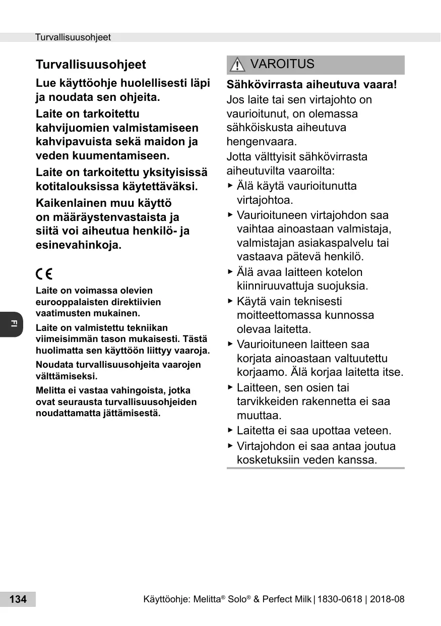 Käyttöohje: Melitta® Solo® & Perfect Milk | 1830-0618 | 2018-08