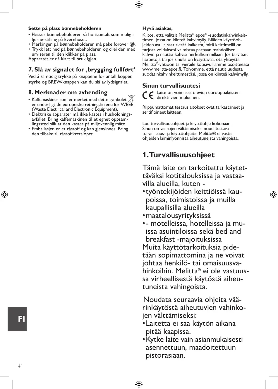 KÄYTTÖOHJE EPOS 1024-01 MELITTA