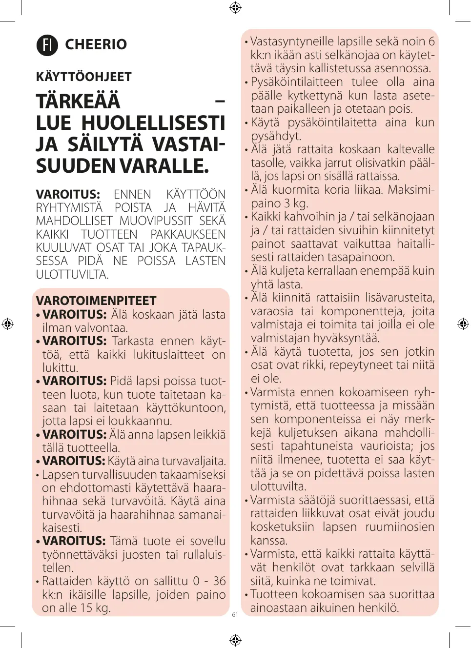 KÄYTTÖOHJE CHEERIO CHICCO