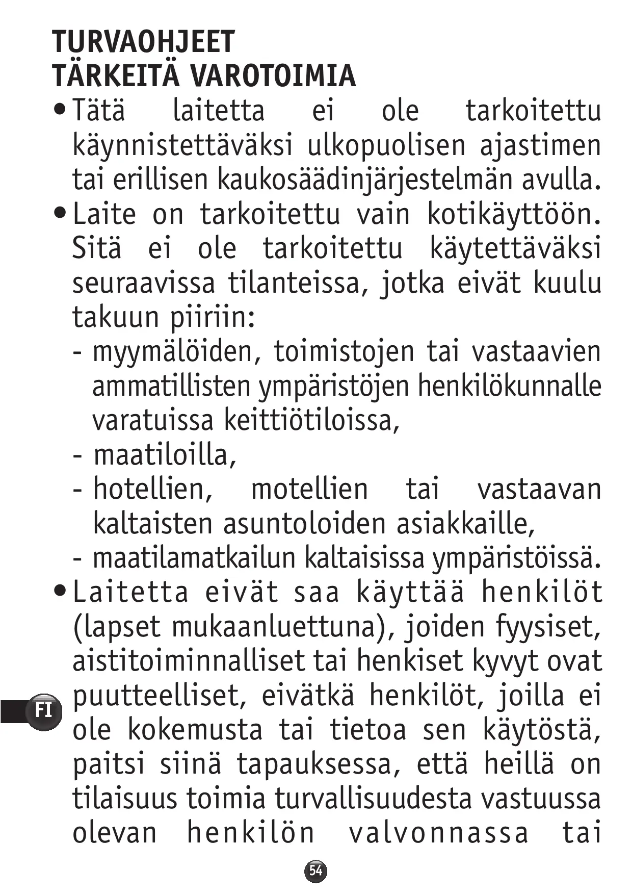 - por los clientes de hoteles, moteles y demás entornos de tipo residencial, - en entornos de tipo casas de turismo rural. • Este aparato no está previsto para ser utilizado por personas (incluso niños) cuyas capacidades físicas, sensoriales o mentales estén reducidas, o personas provistas de experiencia o de conocimiento, excepto sin han podido 22