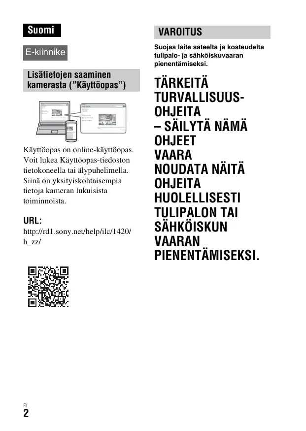Téléchargez la notice de votre Digitaalinen kamera au format PDF gratuitement ! Retrouvez votre notice ALPHA 7S - SONY et reprennez votre appareil électronique en main. Sur cette page sont publiés tous les documents nécessaires à l'utilisation de votre appareil ALPHA 7S de la marque SONY.