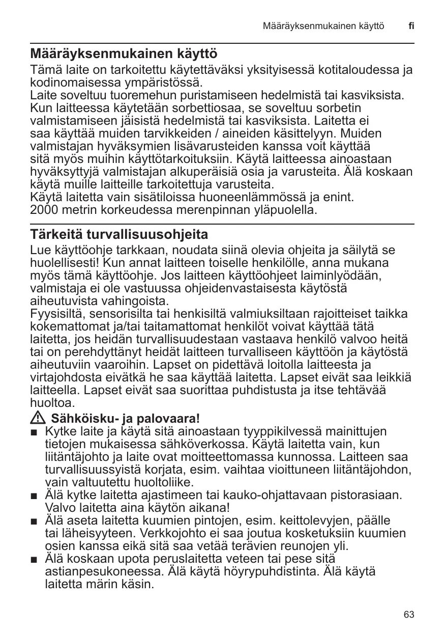 Ne brancher la fiche secteur qu’une fois tous les préparatifs sur l’appareil achevés, les composants assemblés correctement et montés sur l’appareil de base.
