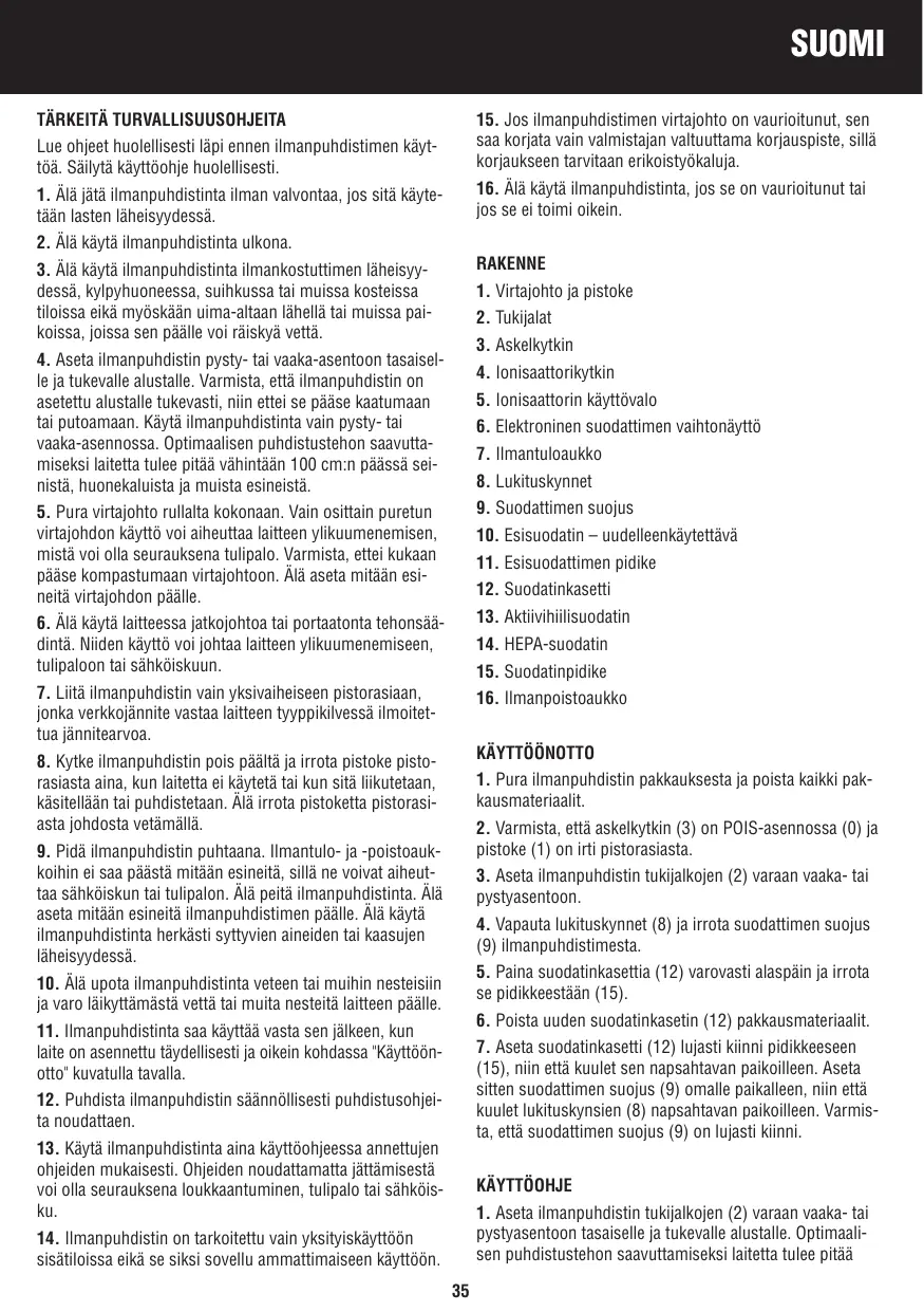 KÄYTTÖOHJE HAP-16200E HONEYWELL