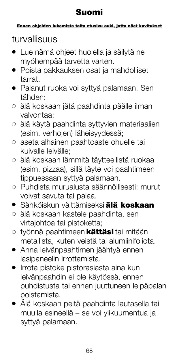 Avvolgere il cavo in eccesso mediante gli appositi supporti alla base dell’apparecchio 1. Desenchufe siempre la tostadora cuando no esté en uso, antes de limpiarla o de sacar tostadas atascadas. 43