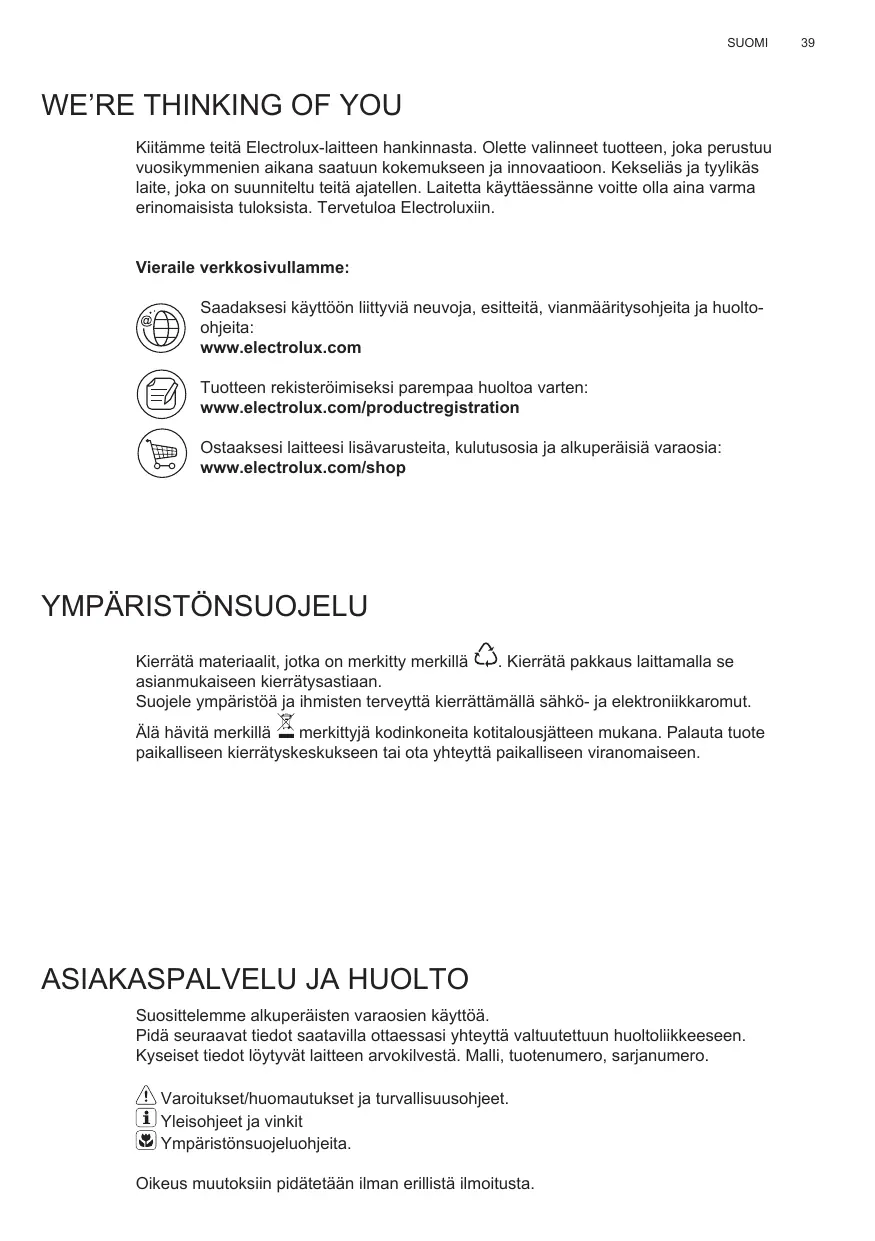 Enregistrer votre produit pour obtenir un meilleur service : www.electrolux.com/productregistration Acheter des accessoires, consommables et pièces de rechange d’origine pour votre appareil : www.electrolux.com/shop