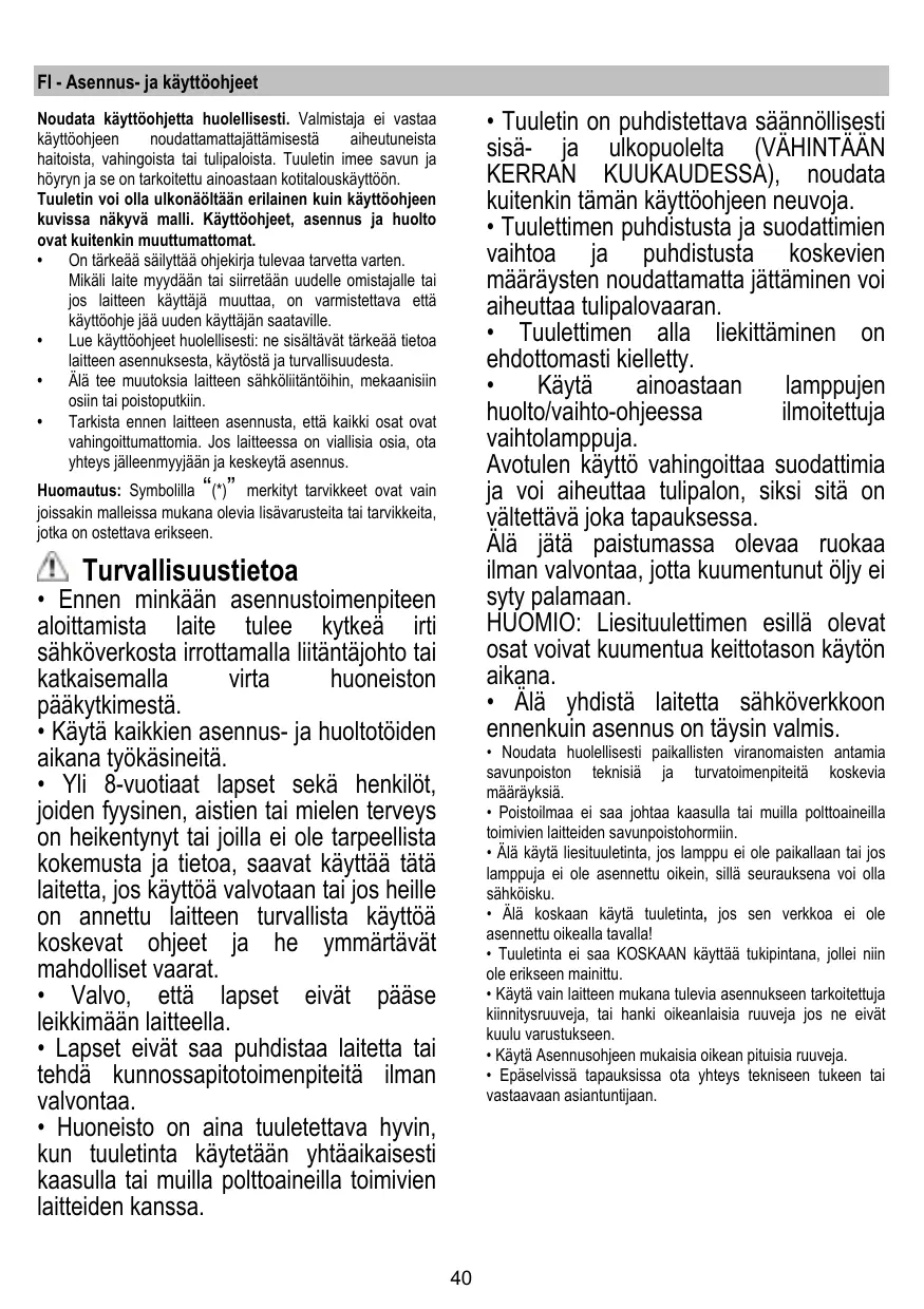 KÄYTTÖOHJE THUNDER LUX TURBOAIR