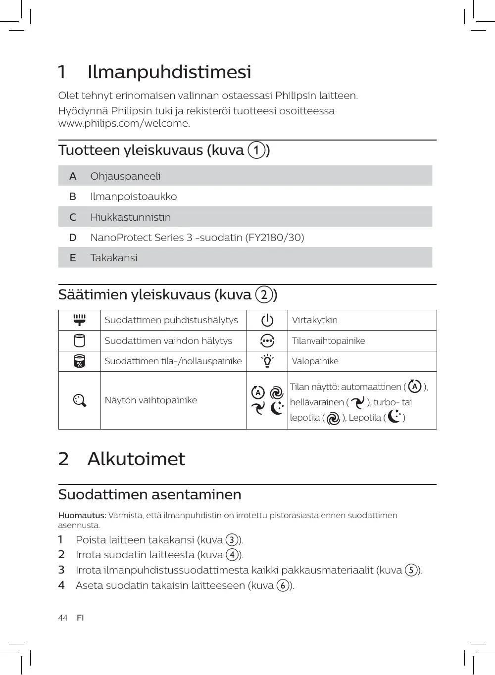 Téléchargez la notice de votre Ilmanpuhdistin au format PDF gratuitement ! Retrouvez votre notice AC2939 - PHILIPS et reprennez votre appareil électronique en main. Sur cette page sont publiés tous les documents nécessaires à l'utilisation de votre appareil AC2939 de la marque PHILIPS.