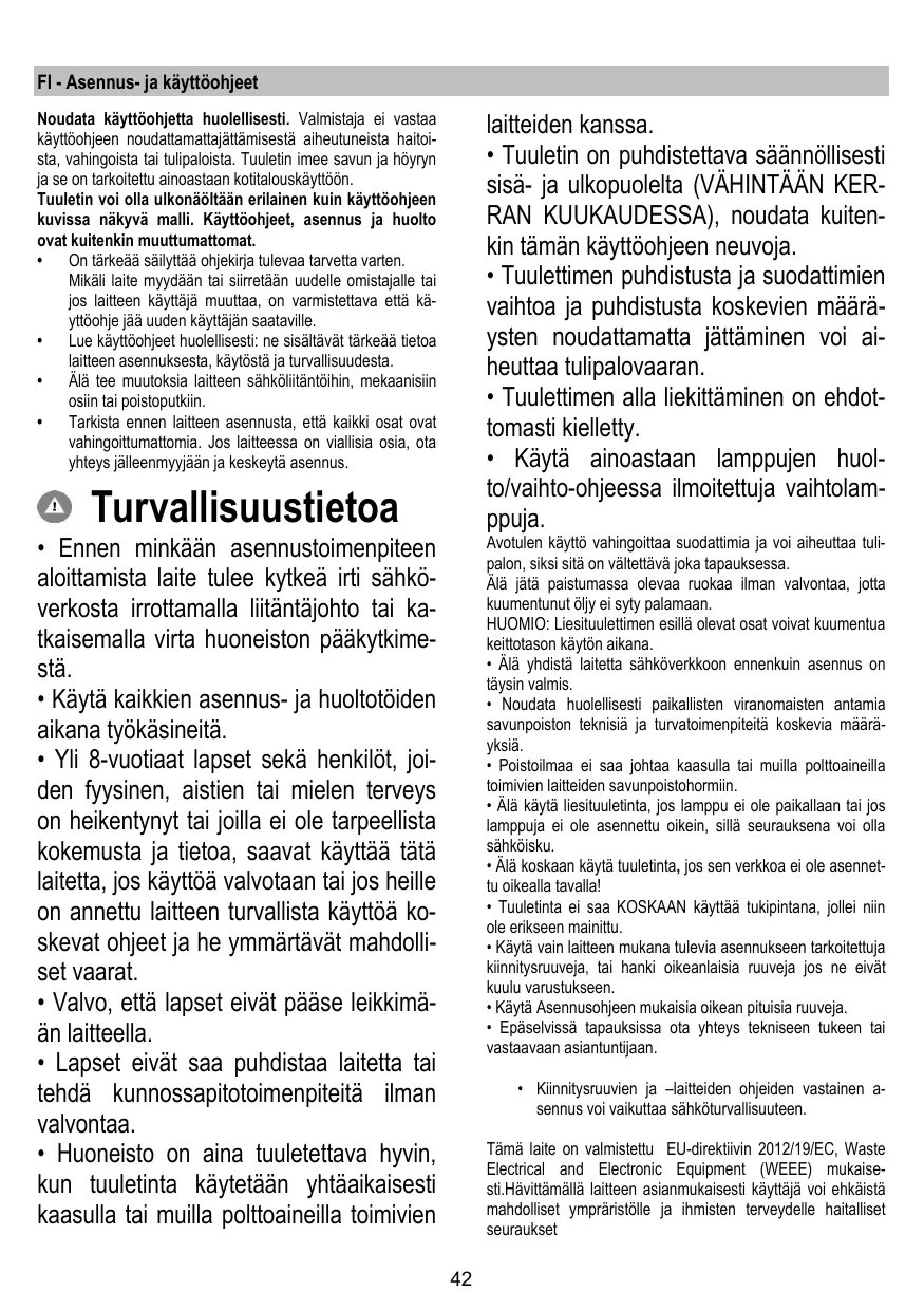 - Tuuletinta ei saa KOSKAAN käyttää tukipintana, jollei niin ole erikseen mainittu.