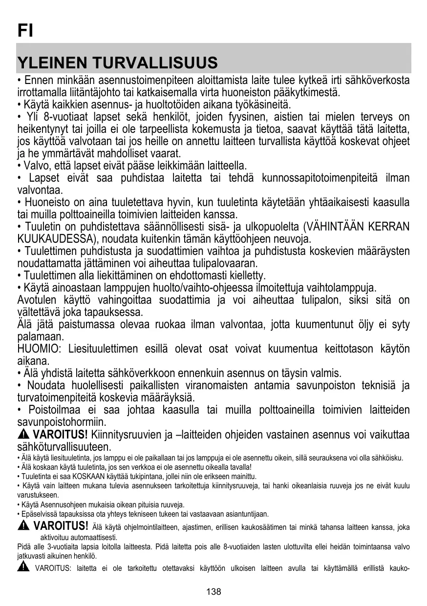 • Ne pas utiliser ou laisser la hotte sans les lampes correctement montées, car un éventuel risque de choc électrique est possible.