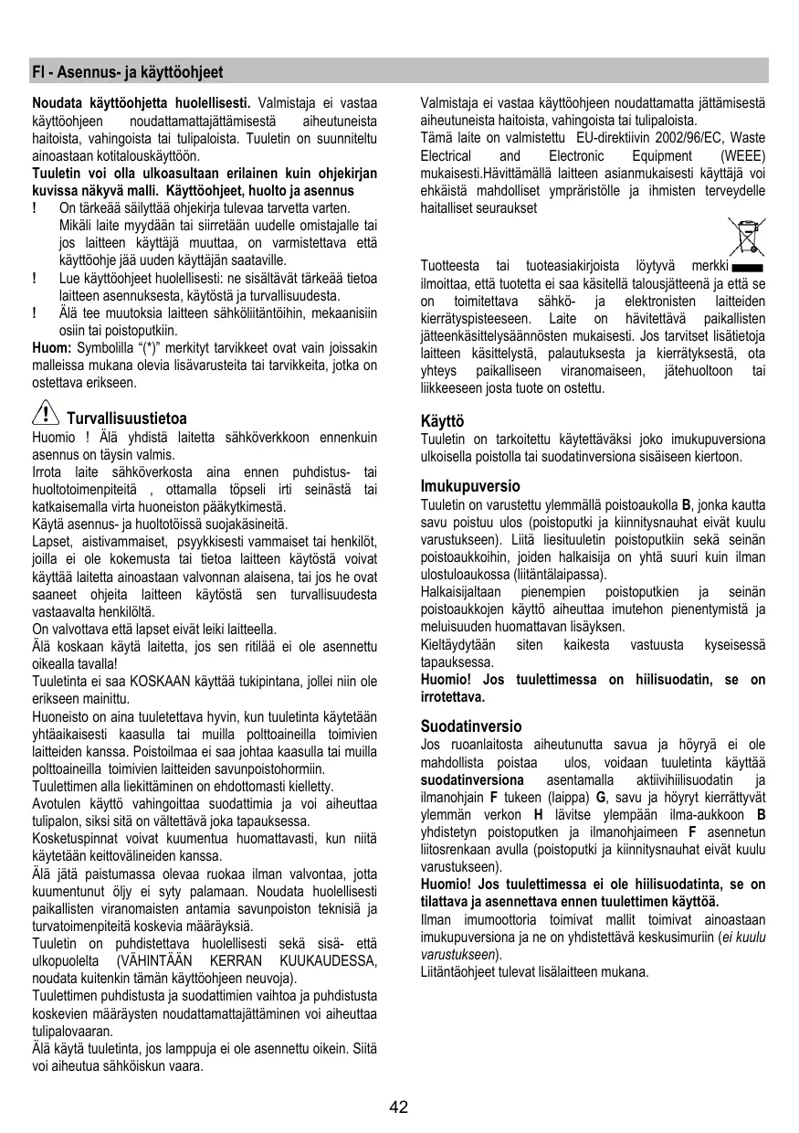 KÄYTTÖOHJE SICILIA TURBOAIR