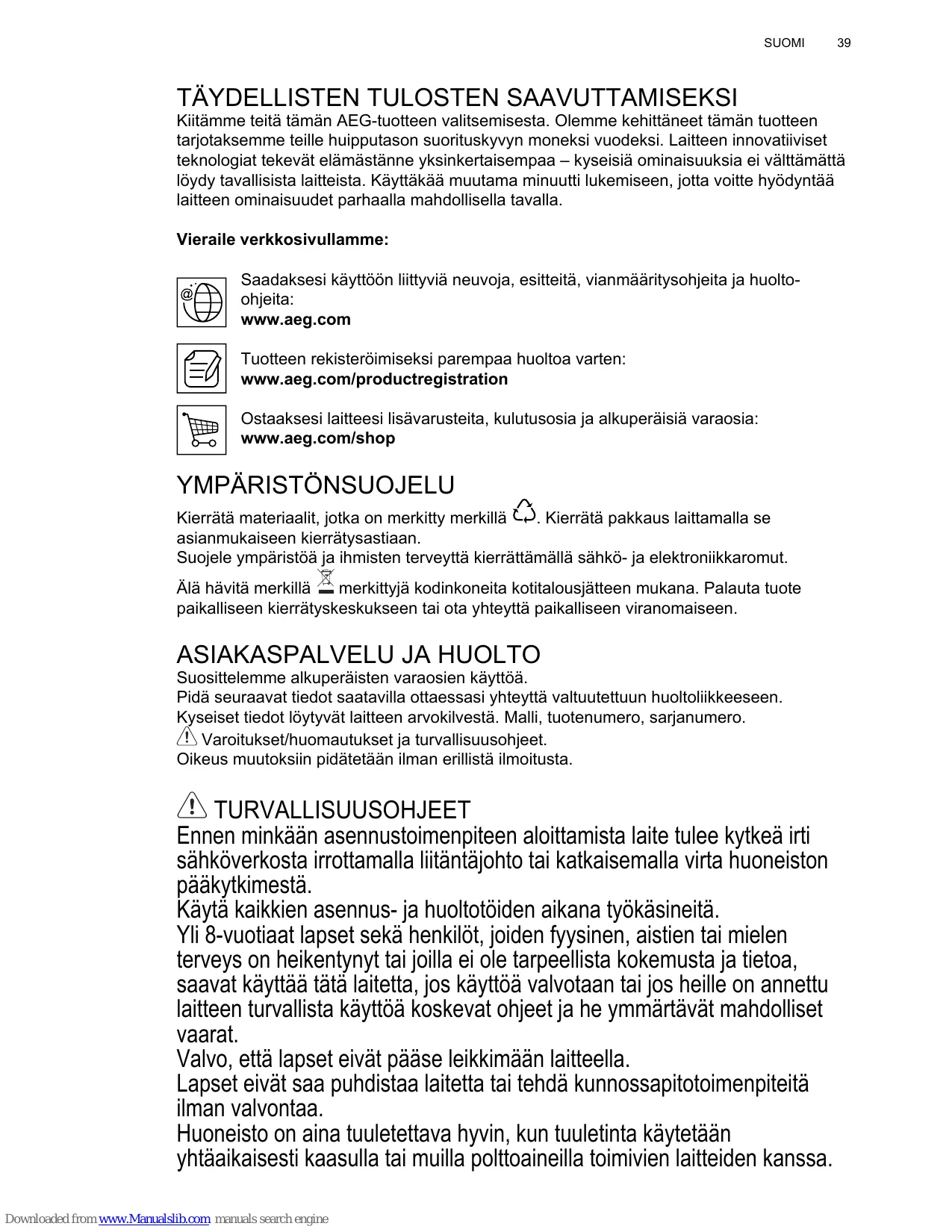 Enregistrer votre produit pour obtenir un meilleur service : www.aeg.com/productregistration Acheter des accessoires, consommables et pièces de rechange d’origine pour votre appareil : www.aeg.com/shop