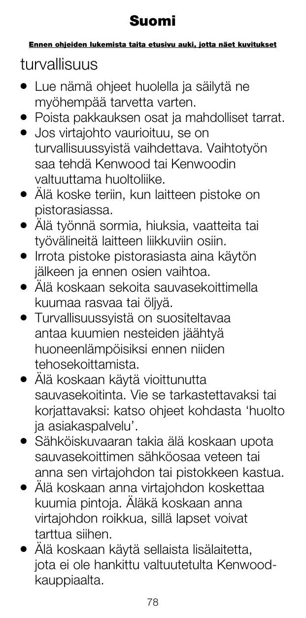 Téléchargez la notice de votre Sauvasekoitin au format PDF gratuitement ! Retrouvez votre notice HDP109 - KENWOOD et reprennez votre appareil électronique en main. Sur cette page sont publiés tous les documents nécessaires à l'utilisation de votre appareil HDP109 de la marque KENWOOD.