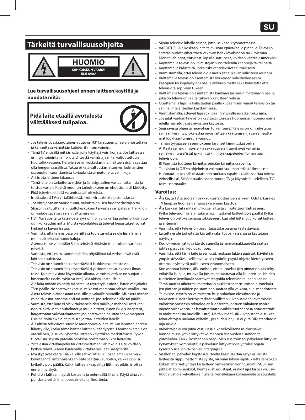 SU Tärkeitä turvallisuusohjeita
