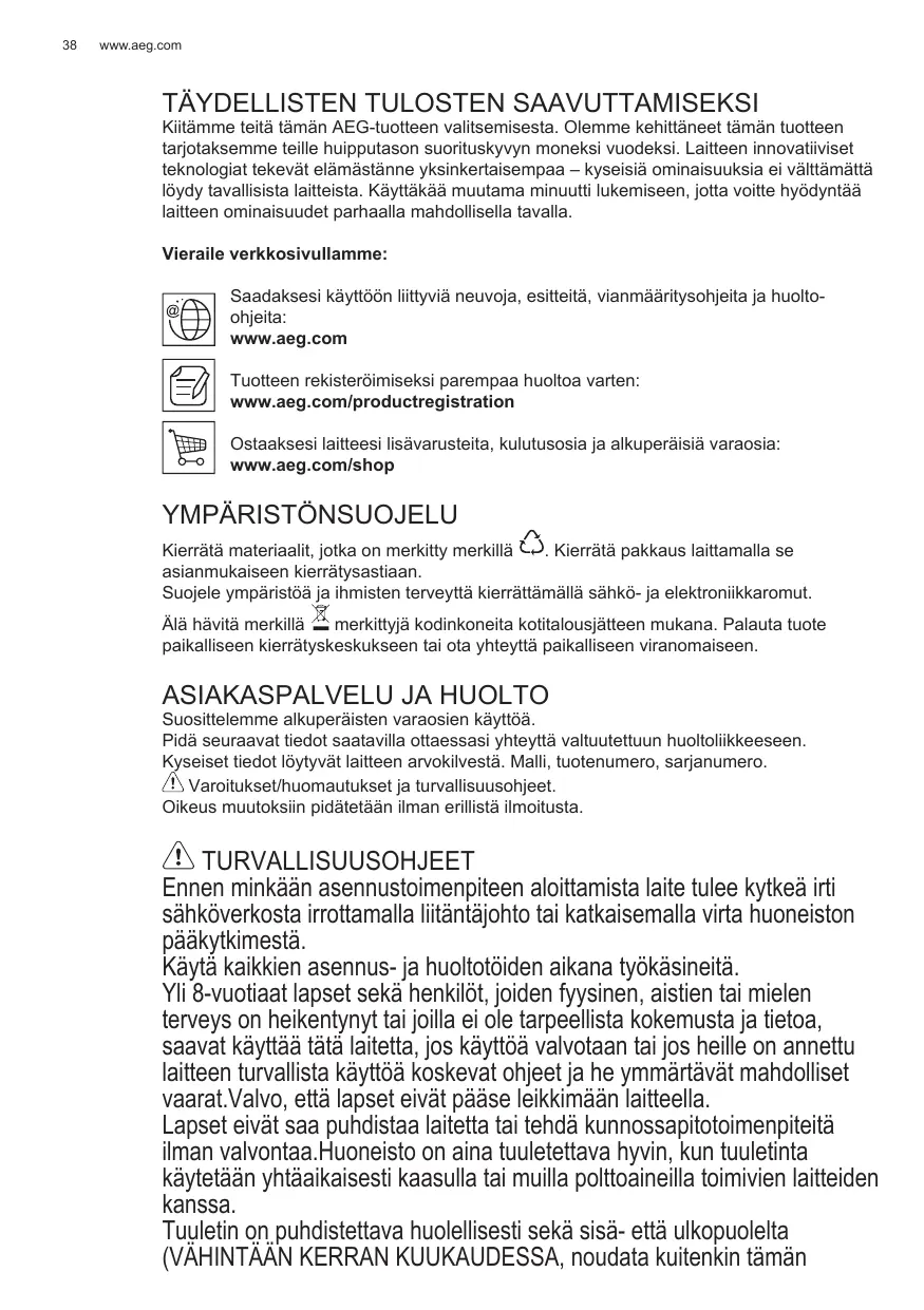 Enregistrer votre produit pour obtenir un meilleur service : www.aeg.com/productregistration Acheter des accessoires, consommables et pièces de rechange d’origine pour votre appareil : www.aeg.com/shop
