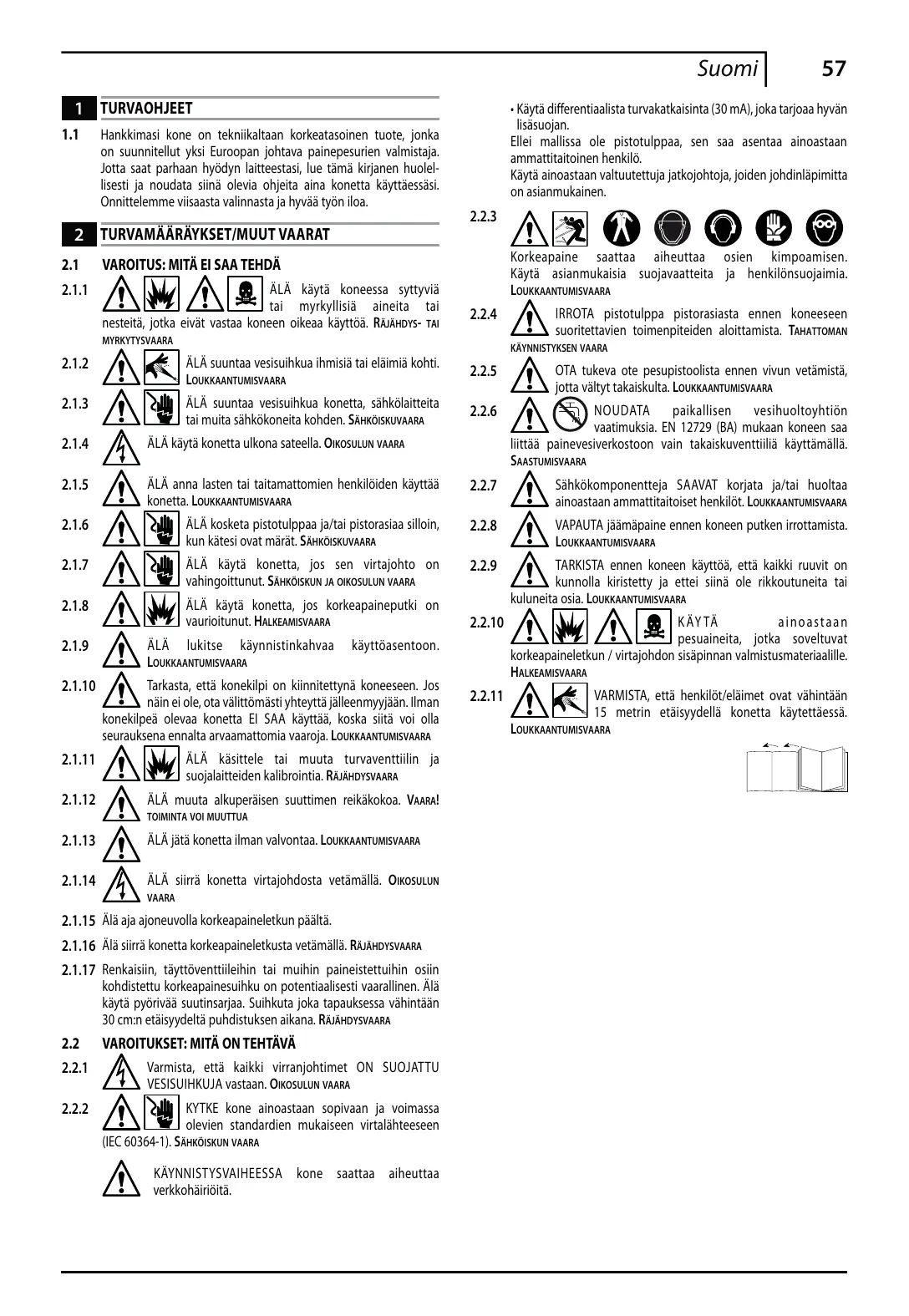 2.1.17 O jacto de água pressão dirigido contra pneus, válvulas de pneus e outros componentes sob pressão é potencialmente perigoso. Evite utilizar o kit bico giratório e mantenha sempre uma distância do jacto de pelo menos 30 cm durante a limpeza. PERIGO DE EXPLOSÃO