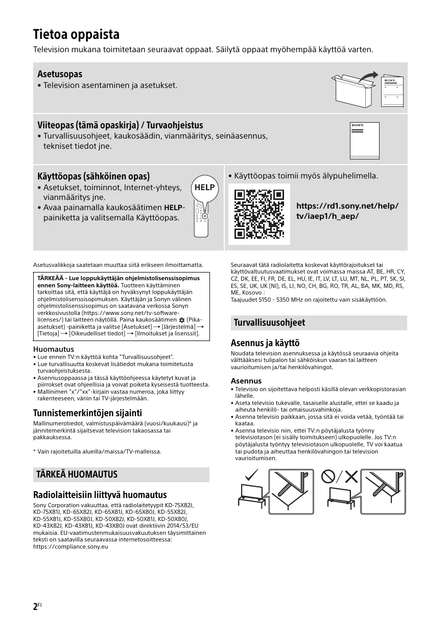 KÄYTTÖOHJE KD55X89J - KD65X89J - KD75X89J SONY