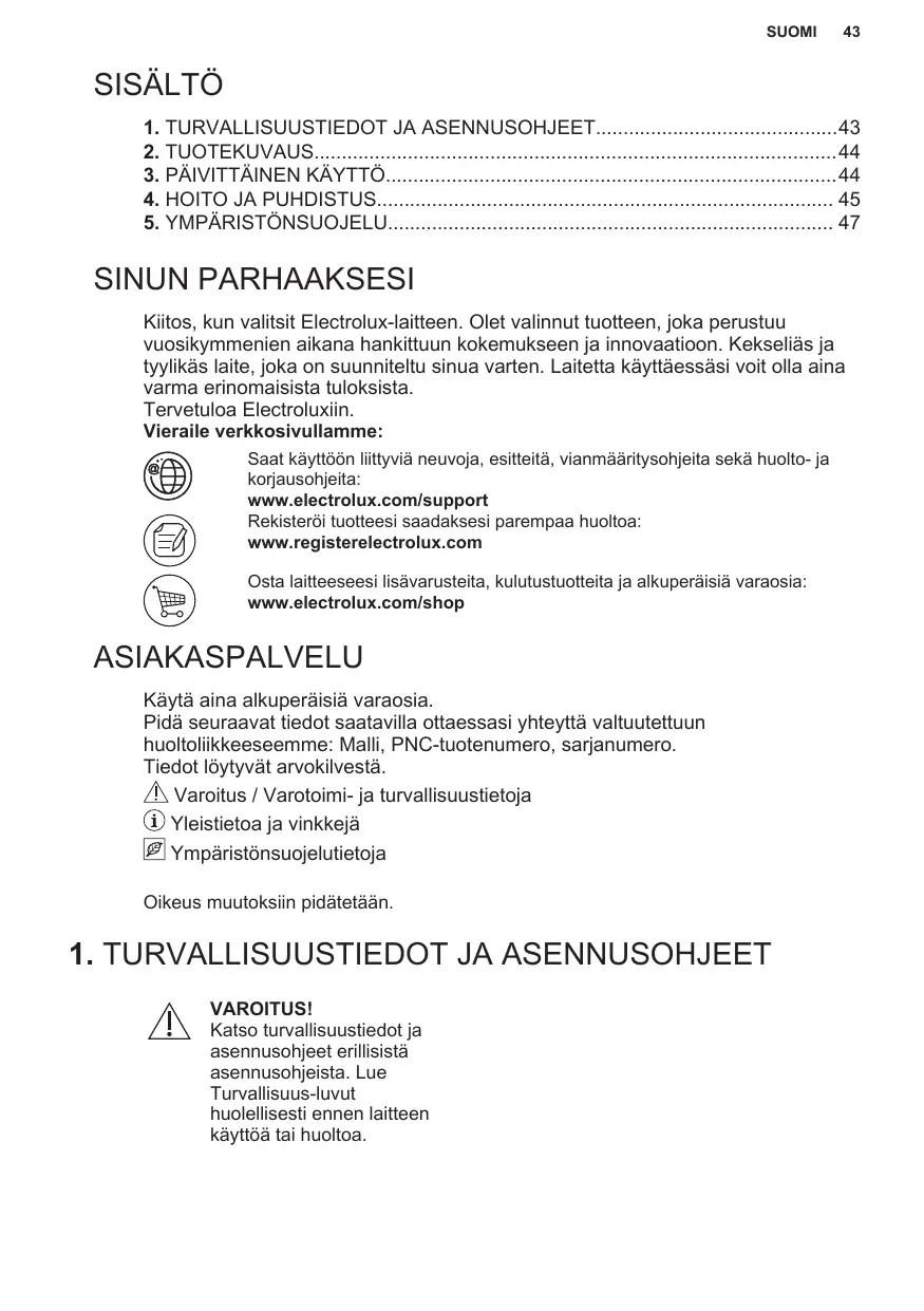 Enregistrer votre produit pour un meilleur service : www.registerelectrolux.com Acheter des accessoires, consommables et pièces de rechange d’origine pour votre appareil : www.electrolux.com/shop