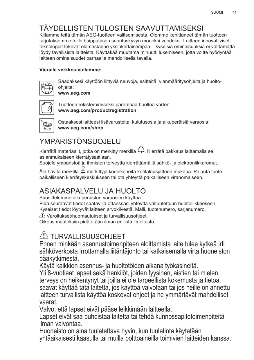 Enregistrer votre produit pour obtenir un meilleur service : www.aeg.com/productregistration Acheter des accessoires, consommables et pièces de rechange d’origine pour votre appareil : www.aeg.com/shop