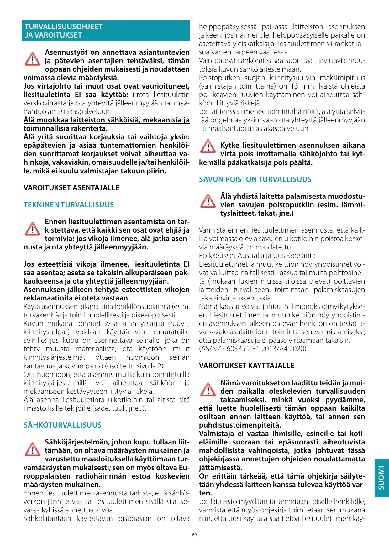 KÄYTTÖOHJE PLANE 800 FALMEC