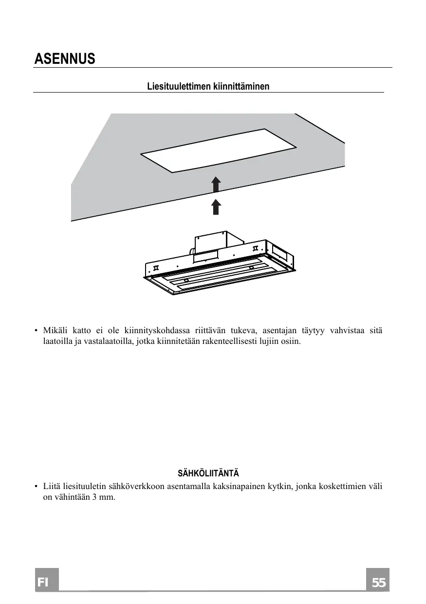 • Vérifier que la tension du secteur correspond à la valeur qui figure sur la plaquette apposée à l’intérieur de la hotte.