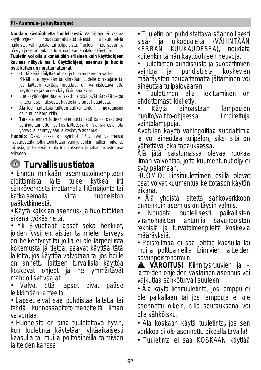 Téléchargez la notice de votre Määrittelemätön au format PDF gratuitement ! Retrouvez votre notice OPEN SUITE - ELICA et reprennez votre appareil électronique en main. Sur cette page sont publiés tous les documents nécessaires à l'utilisation de votre appareil OPEN SUITE de la marque ELICA.