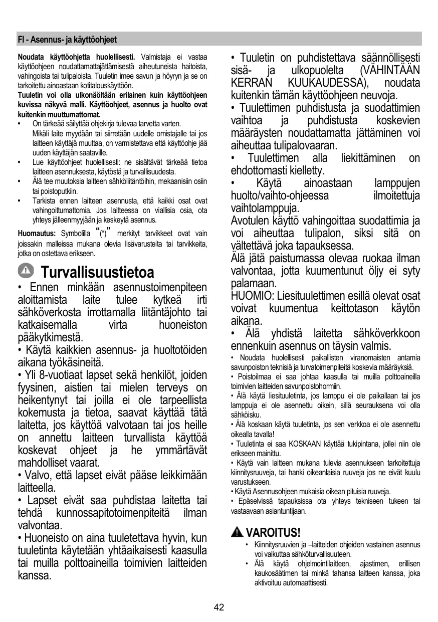 Suivre impérativement les instructions de cette notice. Le constructeur décline toute responsabilité pour tous les inconvénients, dommages ou incendies provoqués à l’appareil et dûs à la non observation des instructions de la présente notice.