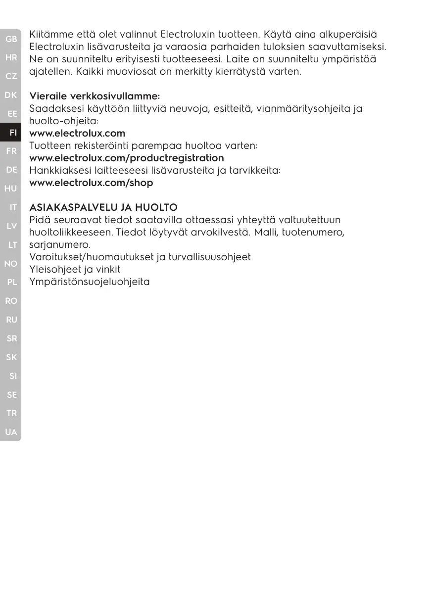 Enregistrez votre produit pour un meilleur service : www.electrolux.com/productregistration Achetez des accessoires et des consommables pour votre appareil : www.electrolux.com/shop