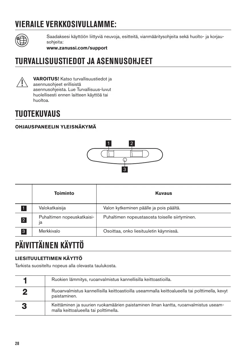 VIERAILE VERKKOSIVULLAMME: Saadaksesi käyttöön liittyviä neuvoja, esitteitä, vianmääritysohjeita sekä huolto- ja korjausohjeita: www.zanussi.com/support