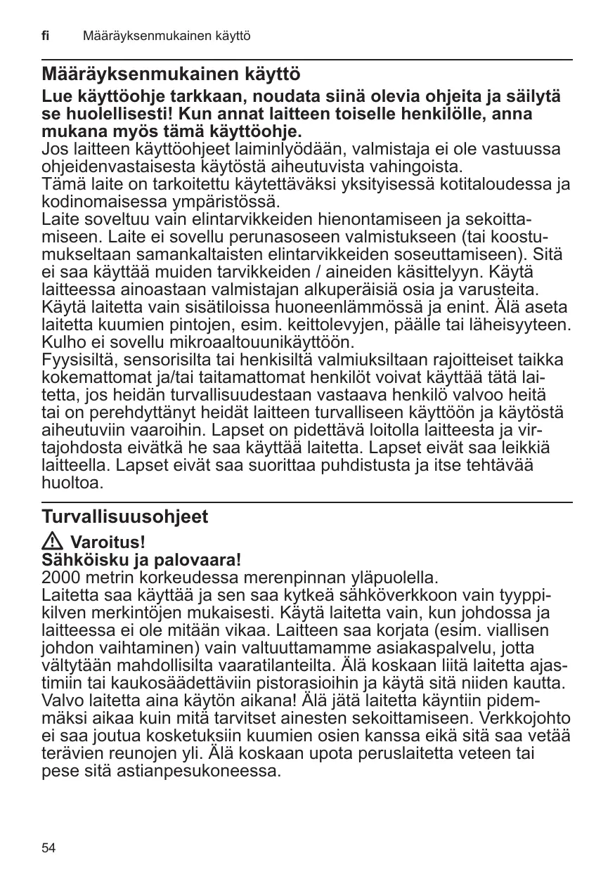 Cet appareil est destiné exclusivement à une utilisation domestique et non professionnelle. L’appareil ne convient que pour broyer et / ou mélanger des produits alimentaires. L’appareil n’est pas adapté pour la préparation de purée de pommes de terre (ou de purées d’aliments de consistance similaire). Il ne doit pas servir à transformer d’autres substances / objets. Utiliser l’appareil avec les pièces et accessoires d’origine uniquement. Ne jamais poser l’appareil sur des surfaces chaudes (tables de cuisson par ex.) ou à proximité de celles-ci. Le bol mixeur ne va pas au four micro-ondes. Cet appareil peut être utilisé par des personnes aux capacités physiques, sensorielles ou mentales réduites ou des personnes inexpérimentées, à condition qu’elles soient surveillées ou qu’elles aient été informées de l’utilisation de l’appareil et qu’elles comprennent les risques inhérents à son usage. Il faut tenir les enfants à l’écart de l’appareil et du cordon de branchement et ne pas leur permettre d’utiliser l’appareil. Ne pas laisser les enfants jouer avec l’appareil. Le nettoyage et l’entretien incombant à l’utilisateur ne doivent pas être effectués par des enfants.