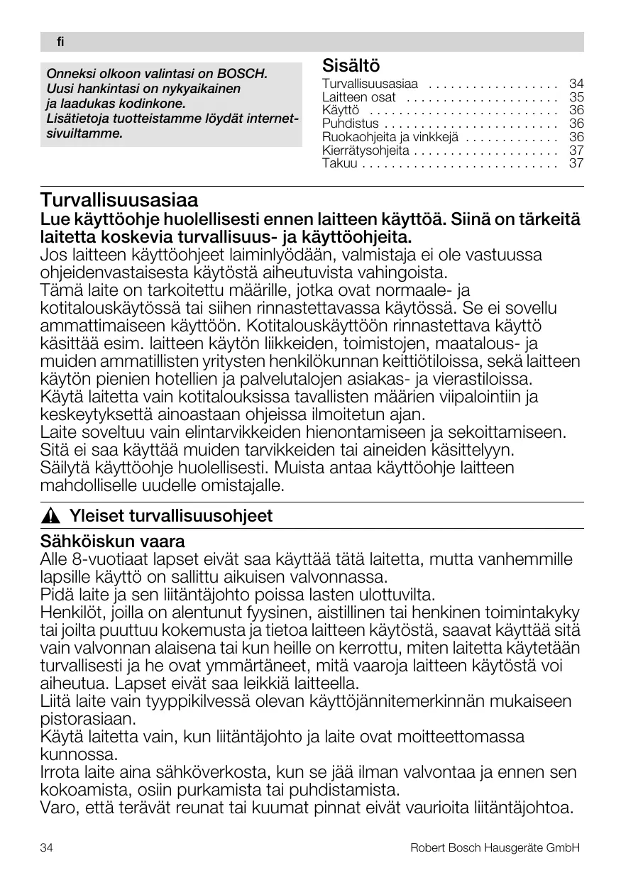 KÄYTTÖOHJE MSM64010 BOSCH