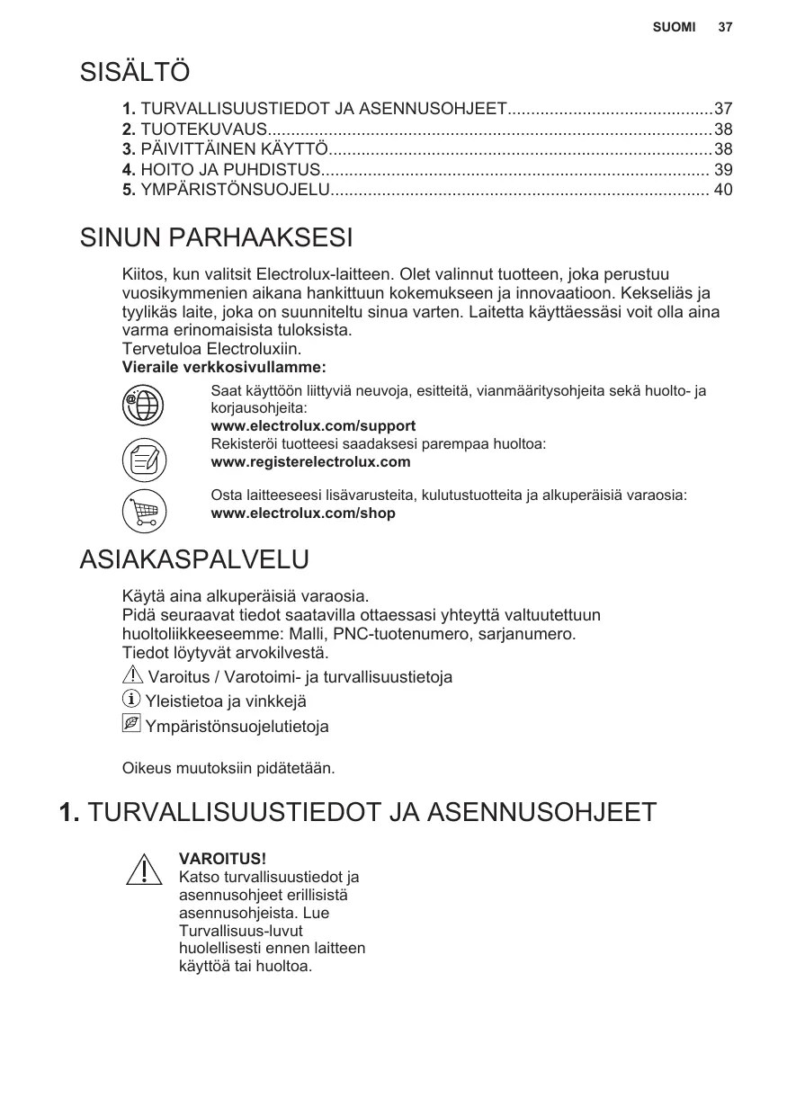 Enregistrer votre produit pour un meilleur service : www.registerelectrolux.com Acheter des accessoires, consommables et pièces de rechange d’origine pour votre appareil : www.electrolux.com/shop