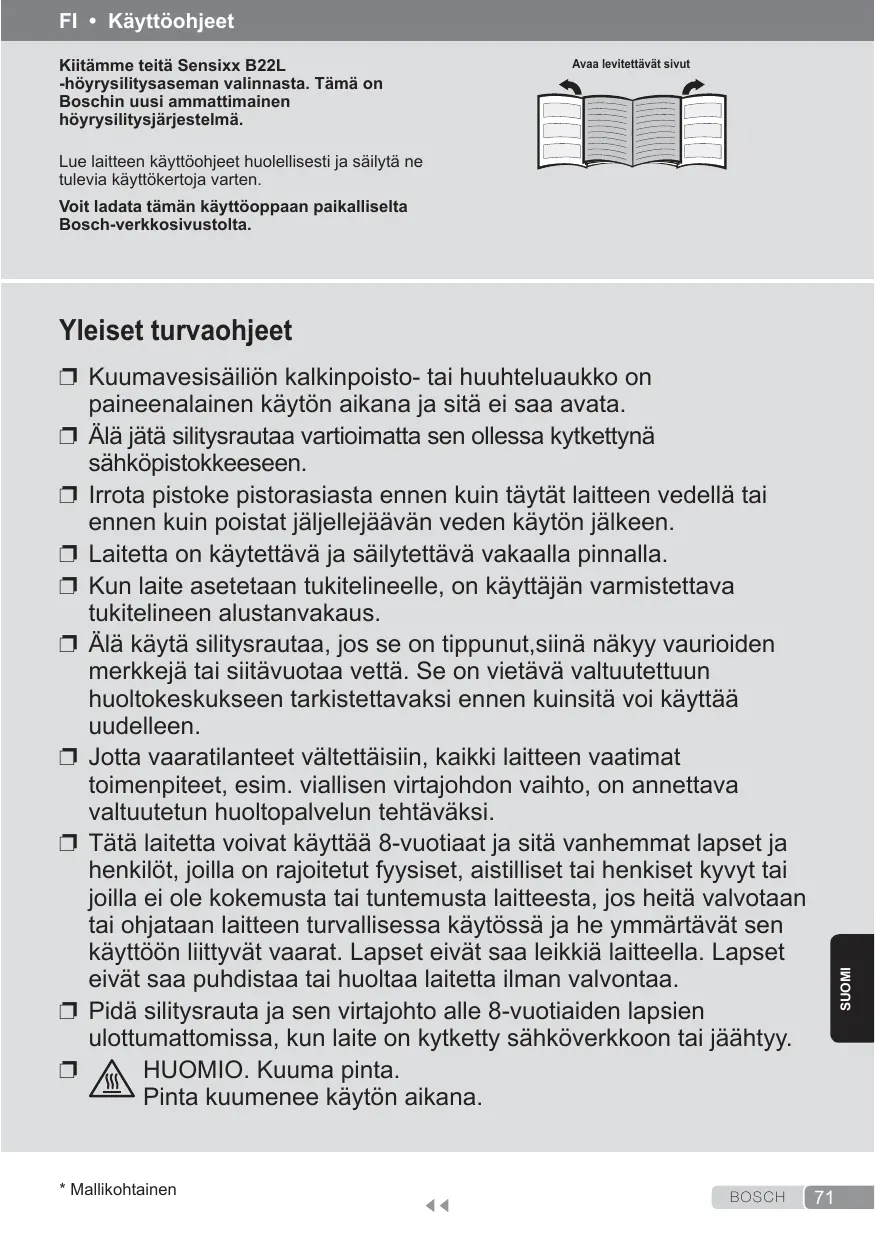 SENSIXX B22L - Silitysrauta BOSCH - Ilmainen käyttöohje ja opas
