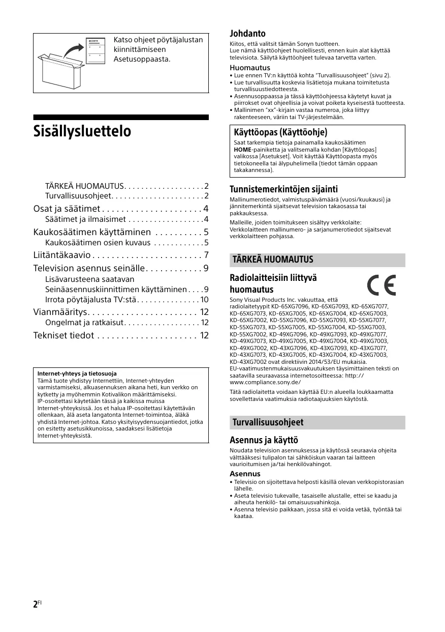 KÄYTTÖOHJE KD435XG7077SAEP SONY