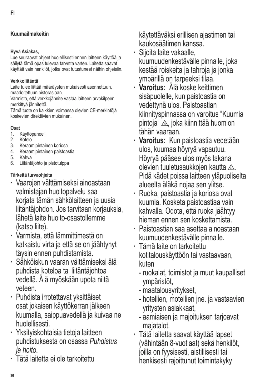 ∙ Débranchez toujours la fiche de la prise - après utilisation, - en cas de fonctionnement défectueux, - avant de nettoyer l’appareil. Ne pas débrancher l’appareil en tirant sur le cordon ; tirez toujours sur la fiche. Ne pas utiliser d’ustensiles de cuisine en métal pour verser et retirer les denrées, afin d’éviter de rayer le revêtement. Nous déclinons toute responsabilité pour les dommages éventuels subis par cet appareil, résultant d’une utilisation incorrecte ou du non-respect de ce mode d’emploi.