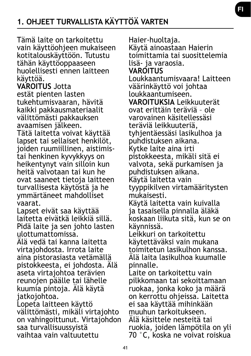 HCH5B1 - Monitoimikone HAIER - Notice d'utilisation et mode d'emploi gratuit