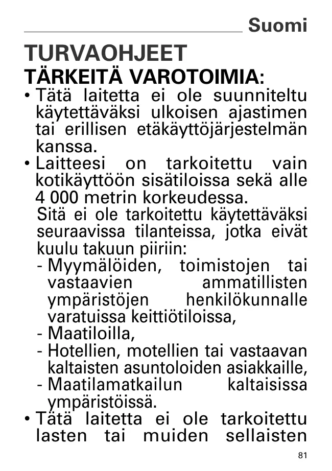 à un usage domestique et à l’intérieur de la maison et à une altitude inférieure à 4000 m. Il n’a pas été conçu pour être utilisé dans les cas suivants qui ne sont pas couverts par la garantie: - Dans des coins de cuisines réservés au personnel dans des magasins, bureaux et autres environnements professionnels, - Dans des fermes, - Par les clients des hôtels, motels et autres environnements à caractère résidentiel, - Dans des environnements de type chambres d’hôtes. 14