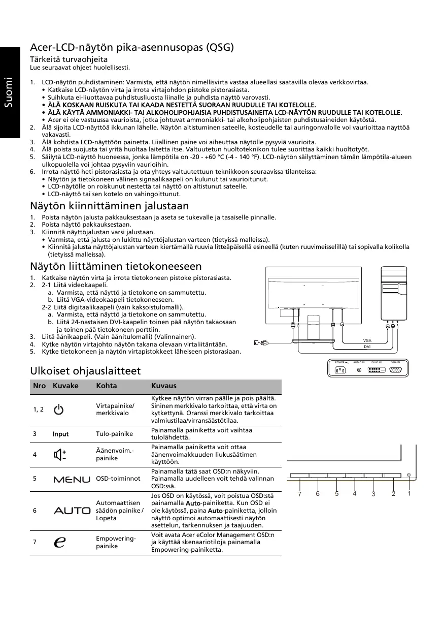 Téléchargez la notice de votre Näyttö au format PDF gratuitement ! Retrouvez votre notice VA200HQ - ACER et reprennez votre appareil électronique en main. Sur cette page sont publiés tous les documents nécessaires à l'utilisation de votre appareil VA200HQ de la marque ACER.
