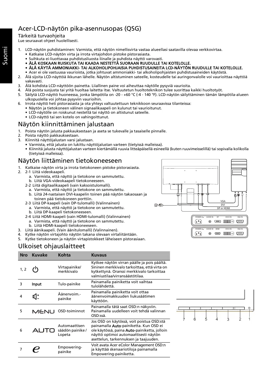Téléchargez la notice de votre Näyttö au format PDF gratuitement ! Retrouvez votre notice VA220HQ - ACER et reprennez votre appareil électronique en main. Sur cette page sont publiés tous les documents nécessaires à l'utilisation de votre appareil VA220HQ de la marque ACER.