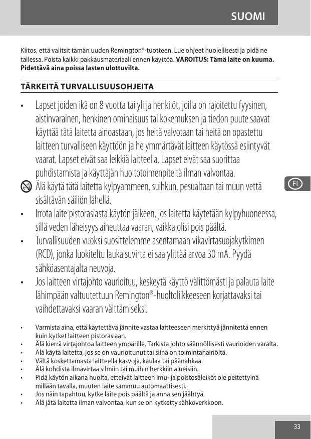 KÄYTTÖOHJE 59001HYDRALUXEPRO REMINGTON