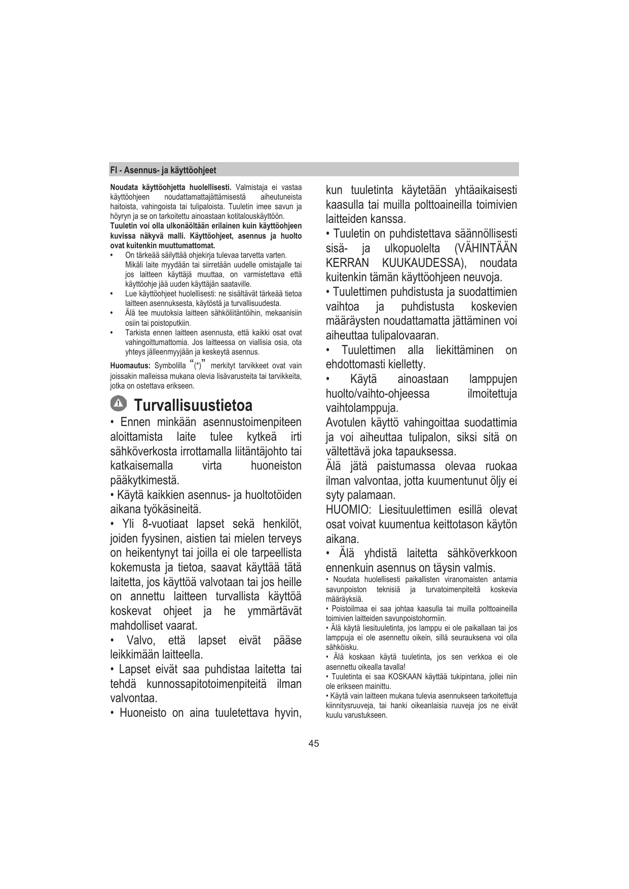 KÄYTTÖOHJE HOTTEADELEBLMAT/A/90i ELICA