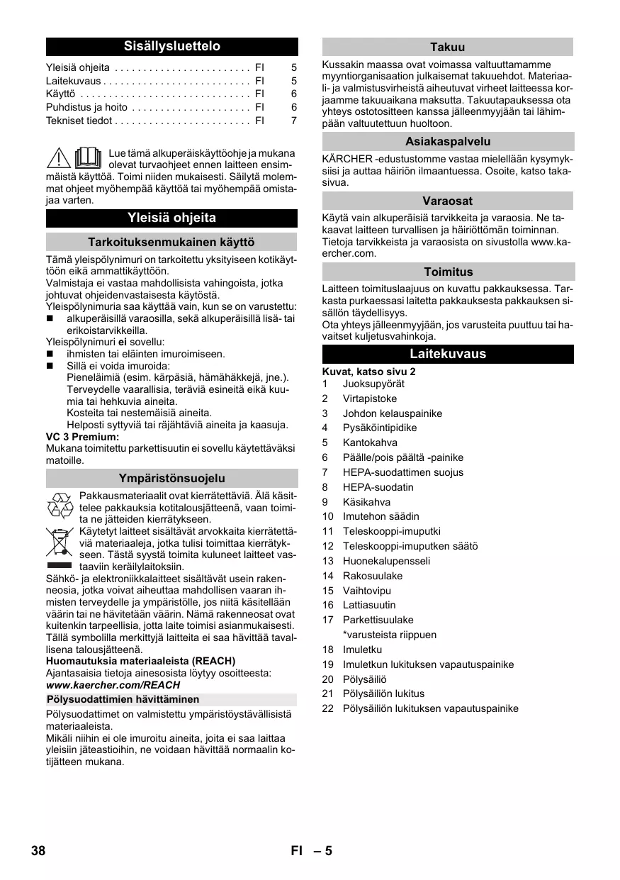 VCS - Säiliöimuri KARCHER - Notice d'utilisation et mode d'emploi gratuit